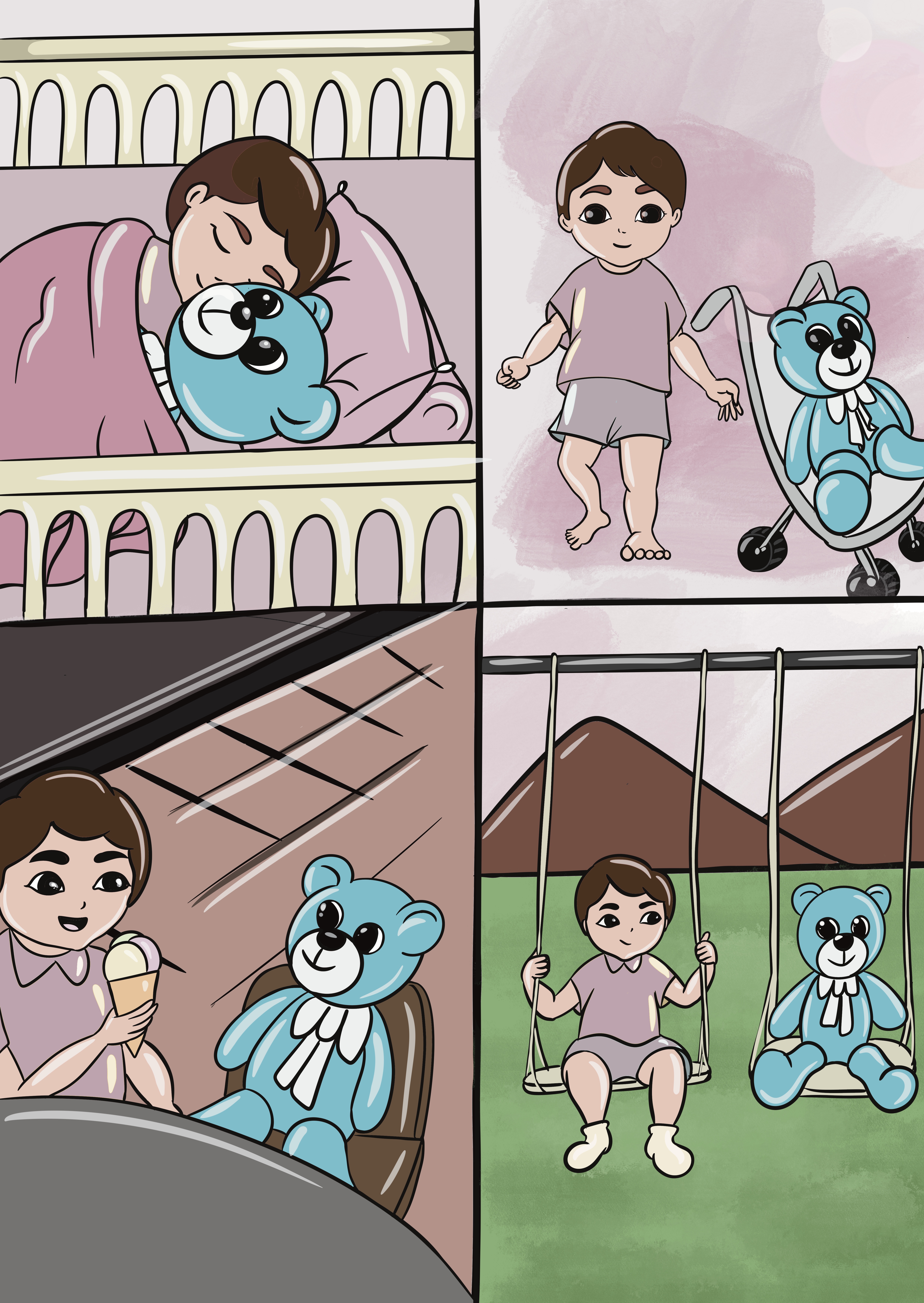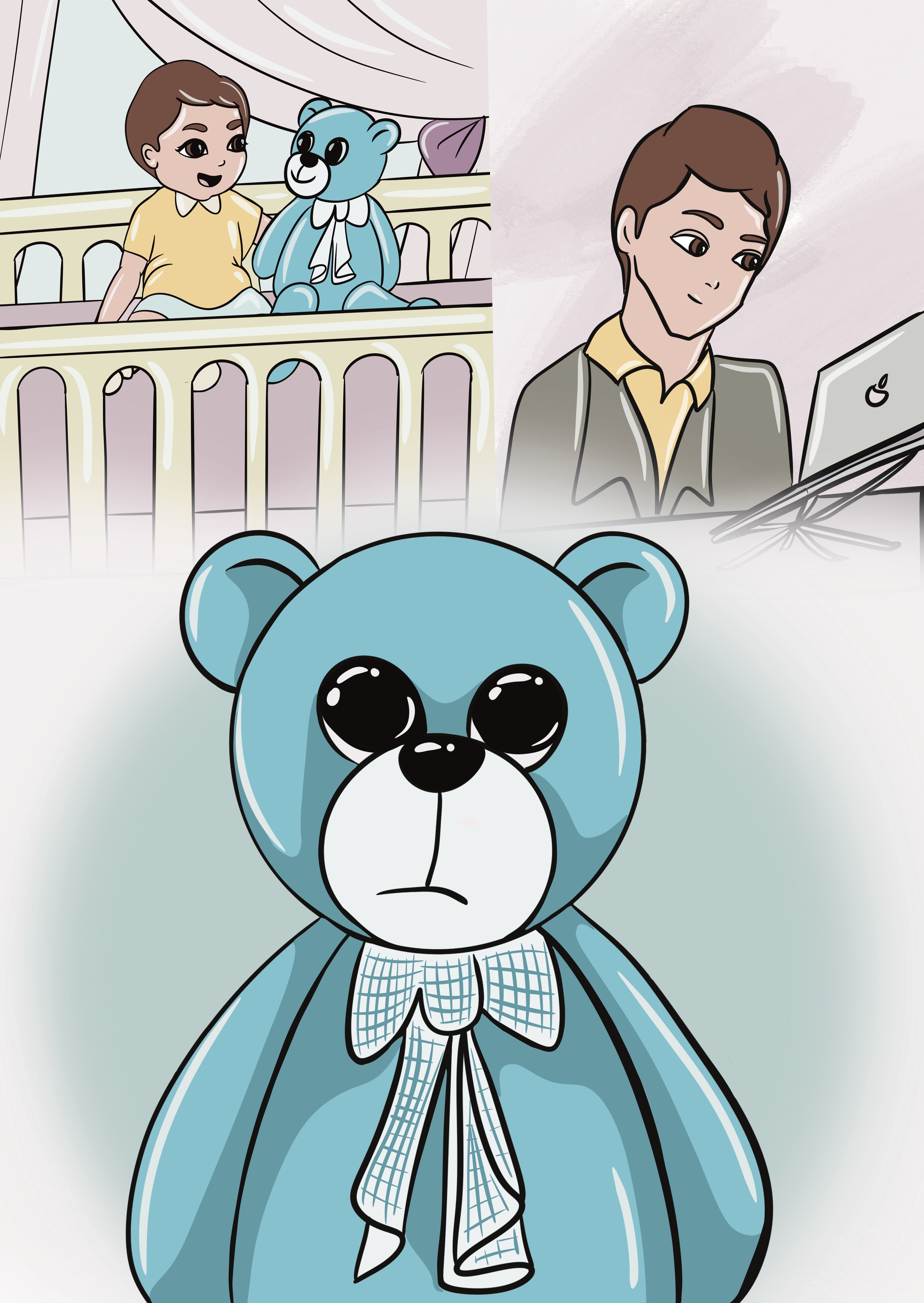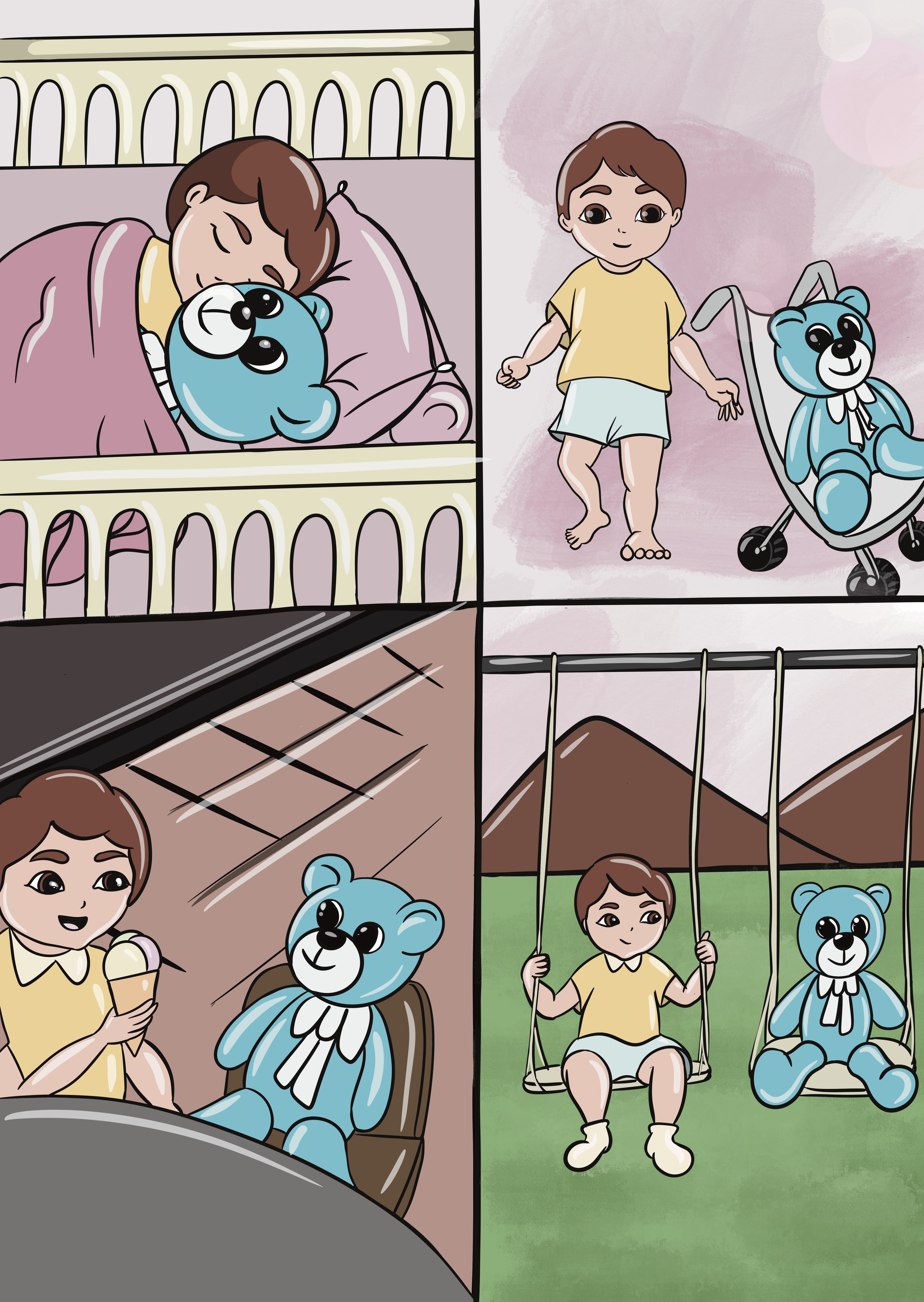A storyboard that captures how a teddy bear might feel — something I imagined as a child when I would deeply empathize with my dolls.
