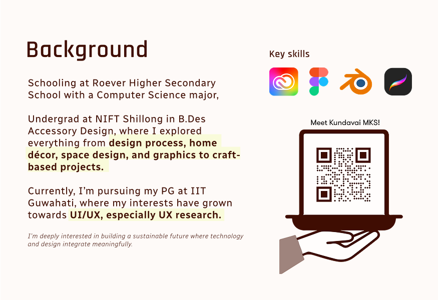 Then I jumped straight to the northeast India to attend NIFT Shillong for UG, and now I’m currently pursuing my master’s at IIT Guwahati. Hopefully, I’ll emerge as the brilliant designer as you expect.